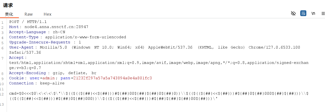 结果居然是无回显,审计代码发现如果命令执行失败是会回换显Cyzcc,但并没有出现,那说明命令是执行成功了的,但是不回显。