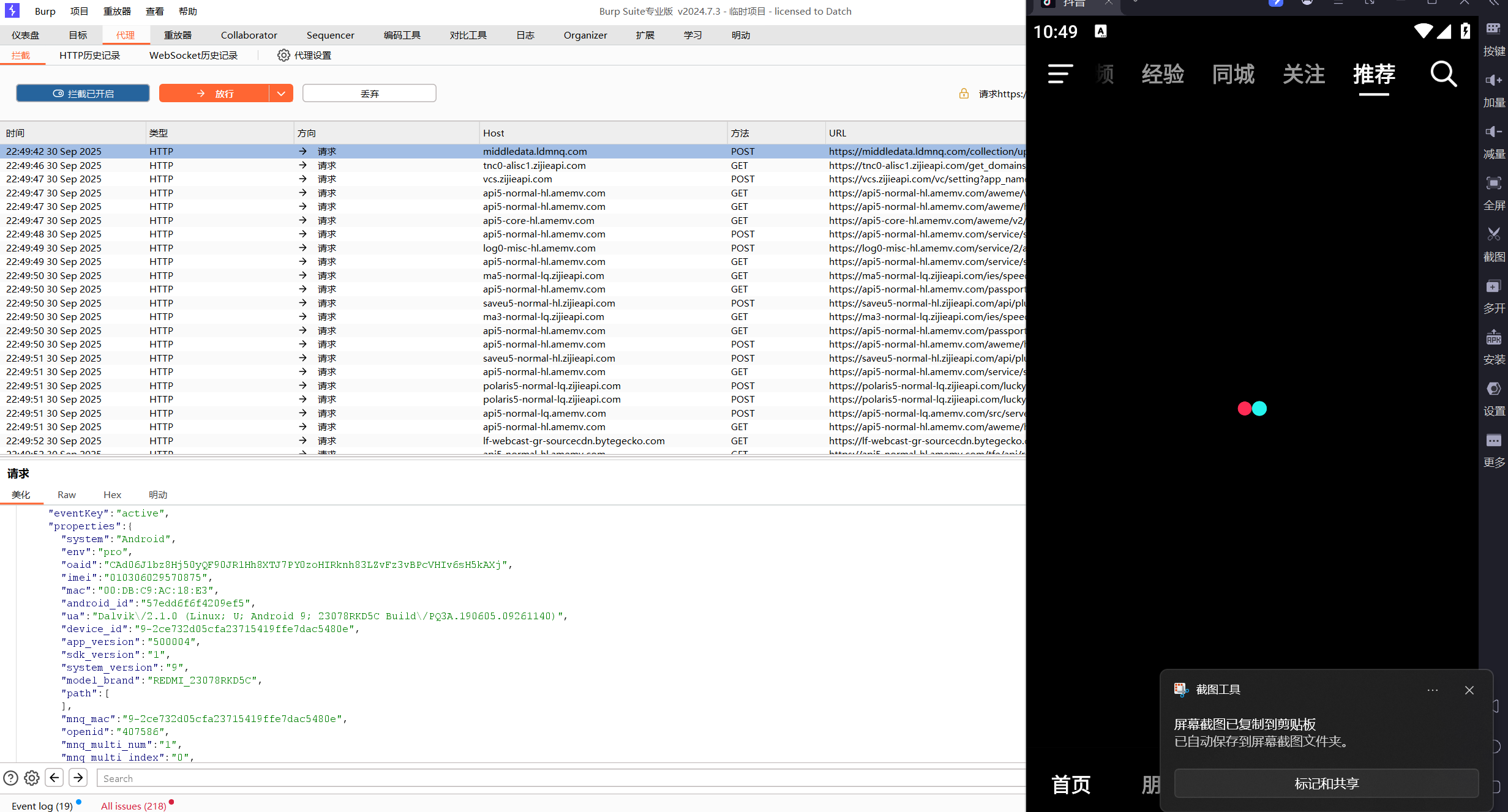 可以看到,已经开始拦截了,因为X音用的好像是预加载视频。