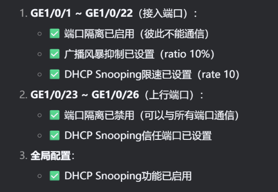 将GE1~GE22设置为:“打开端口隔离,打开防止广播风暴,DHCP,Snopping”